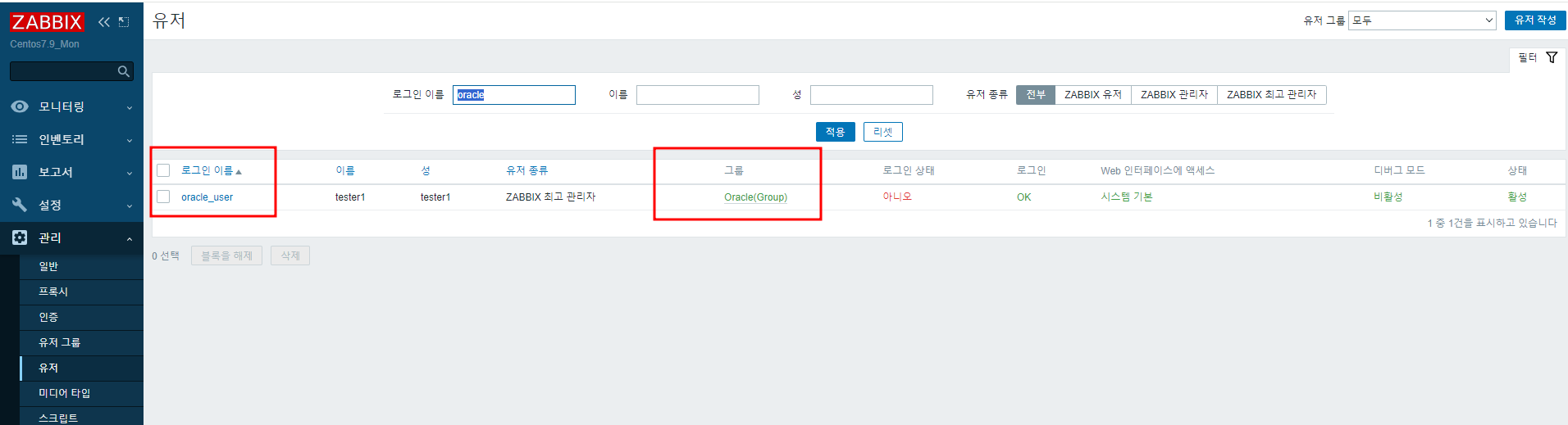 - Zabbix 좌측 메뉴 -> 관리-> 유저 선택후 -> 우측 상단 유저 작성 버튼을 클릭합니다.