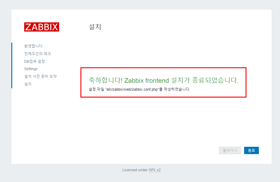- http://[서버ip]/zabbix/ 접속