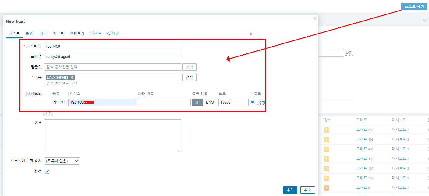 호스트 등록 및 대시 보드 작성은 zabbix 5.0 설정과 큰 차이가 없습니다.
