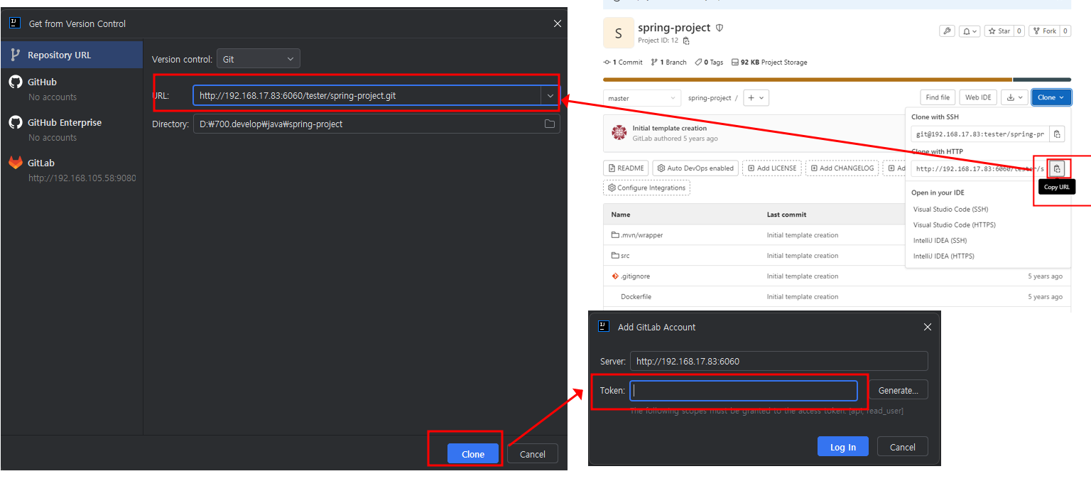 - IntelliJ 에서 Gitlab 소스를 가져오는 방법에 대해 설명 한다.