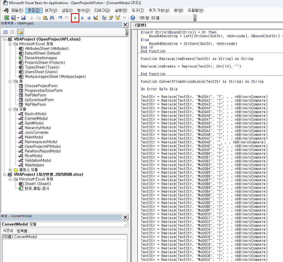 OpenProjectExcel 실행(OpenProjectAPI.xlsm)