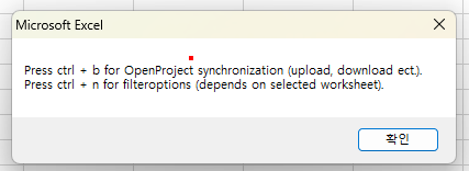 - 압축해제후 OpenProjectAPI.xlsm 파일을 실행 합니다.