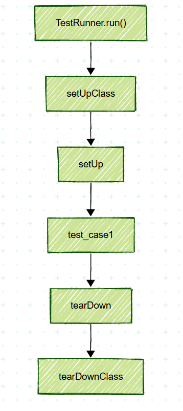 - 테스트 메서드 단위: TestSuite는 각 TestCase 클래스 내의 test_로 시작하는 각 테스트 메서드에 대해 다음 순서대로 메서드를 호출합니다.