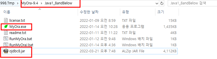 https://growupcoding.tistory.com/27 글 에서 설치한 오라클 jdbc 파일을 MyOra-9.4\Java1_8andBelow 로 복사하겠습니다.