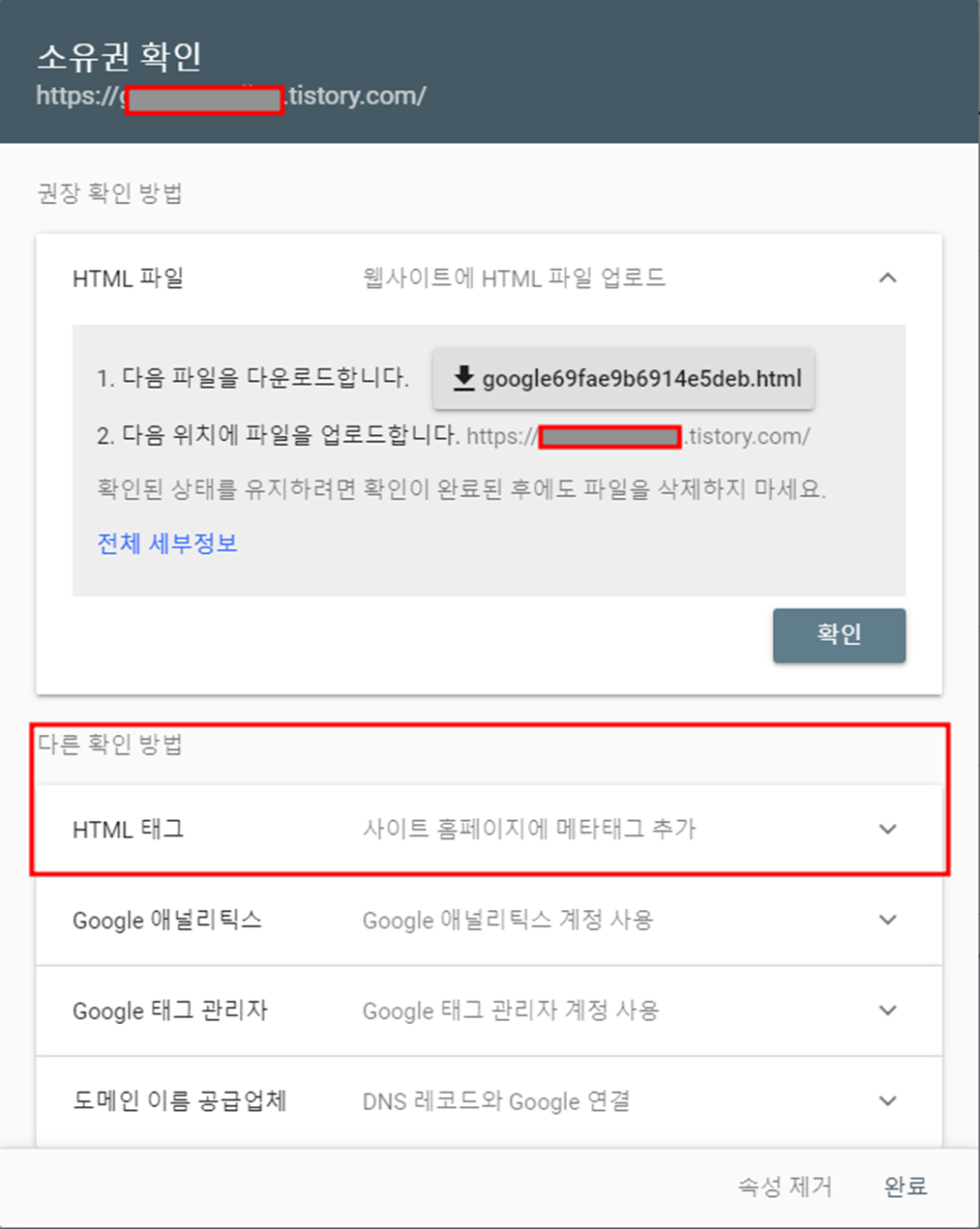 이제 사이트주소에대한 소유권 확인 작업을 진행 하겠습니다.