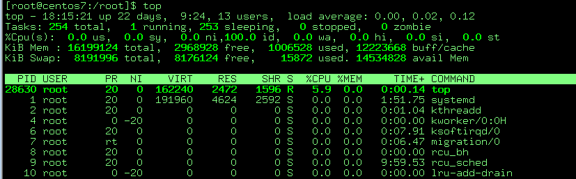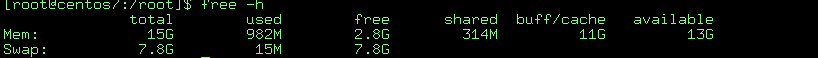 Mem: 15G 982M 2.8G 314M 11G 13G