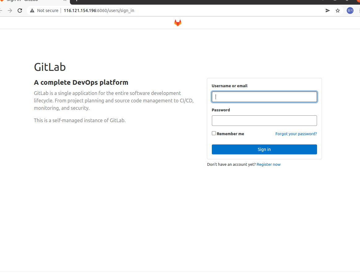 정상적으로 설치가 되고 접속이 된다면 이제 gitlab 을 사용할 준비가 끝났습니다.