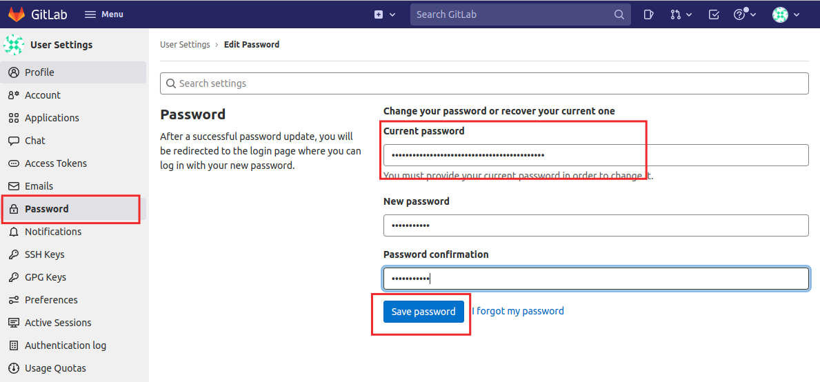 6.Gitlab 비밀번호 변경