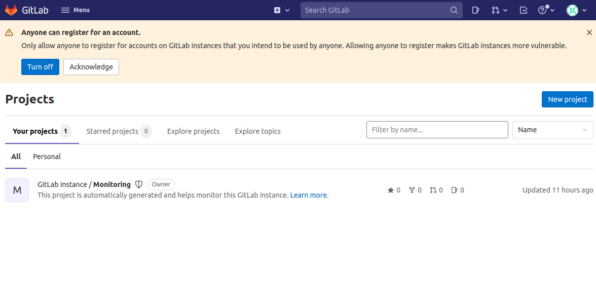 - root 접속 패스워드: /etc/gitlab/initial_root_password