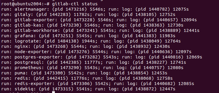 gitlab-ctl status 명령으로 현재 gitlab 상태를 확인 합니다.