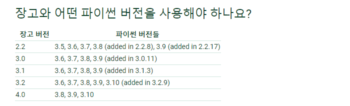 - 장고 호환성 버전