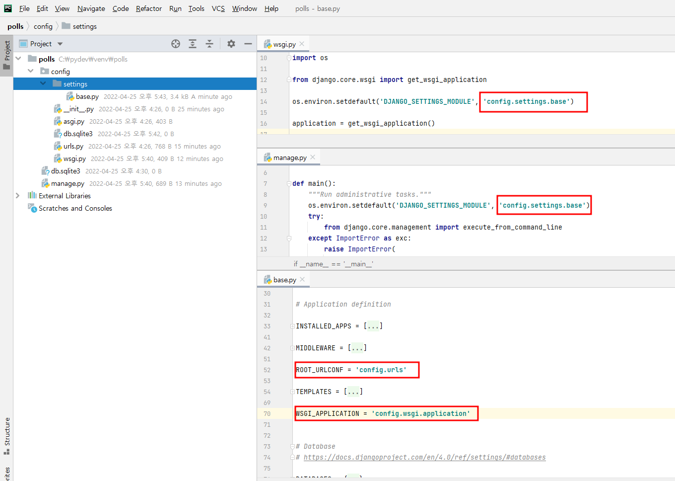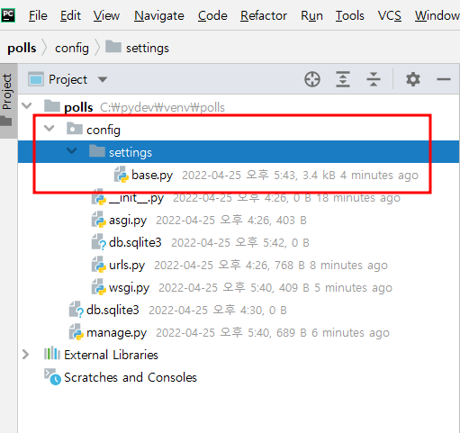 장고 polls 프로젝트 config 디렉 토리 생성