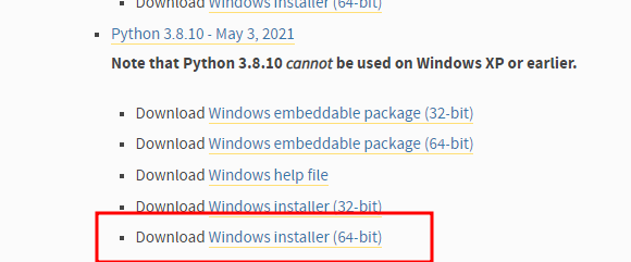 튜토리얼이 장고 버전이 4.0 기준으로 작성되어 있어 파이썬이 지원하는 3.8 버전으로 다운로드하여 설치합니다.