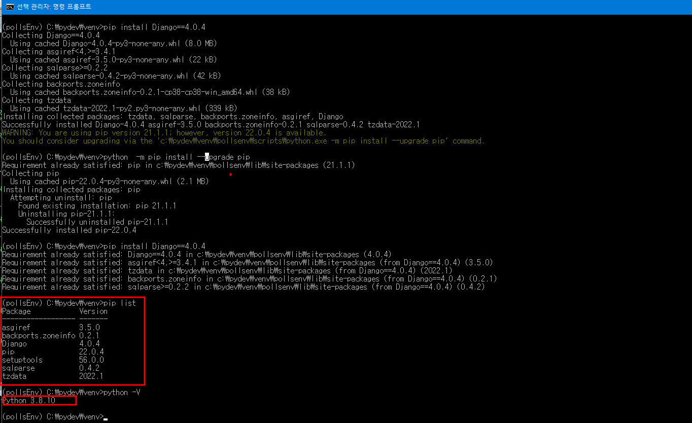 파이썬 가상환경 생성 및 장고 설치