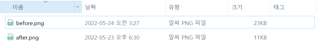 에서 저장된 이미지를 드래그앤 드롭으로 이미지 용량을 줄일 수 있습니다.