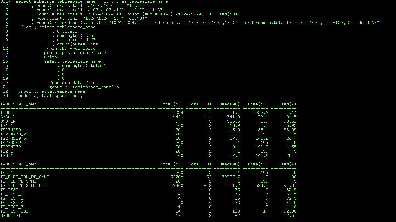 select substr(a.tablespace_name, 1, 30) as tablespace_name