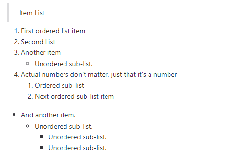 순서가가 필요한 리스트는 숫자로 표현하고 , 순서 지정이 필요없다면 (*,+,-) 기로호 아이템 리스트를 정의 할수 있습니다.