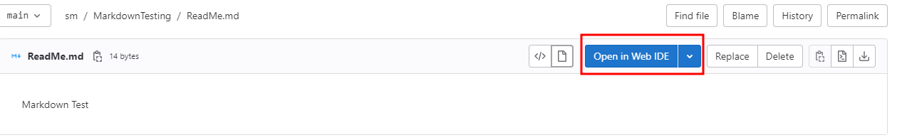 gitlab 에서는 작성한 MD 문서는 Open in Web IDE 매뉴를 통해 문서를 웹상에서 편집을 할수 있습니다.