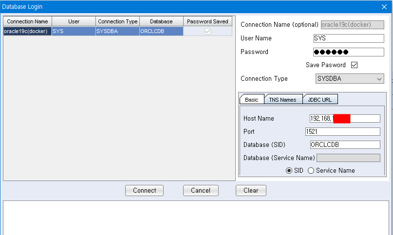 $ docker exec -it oracle sqlplus sys/oracle@//localhost:1521/ORCLCDB as sysdba