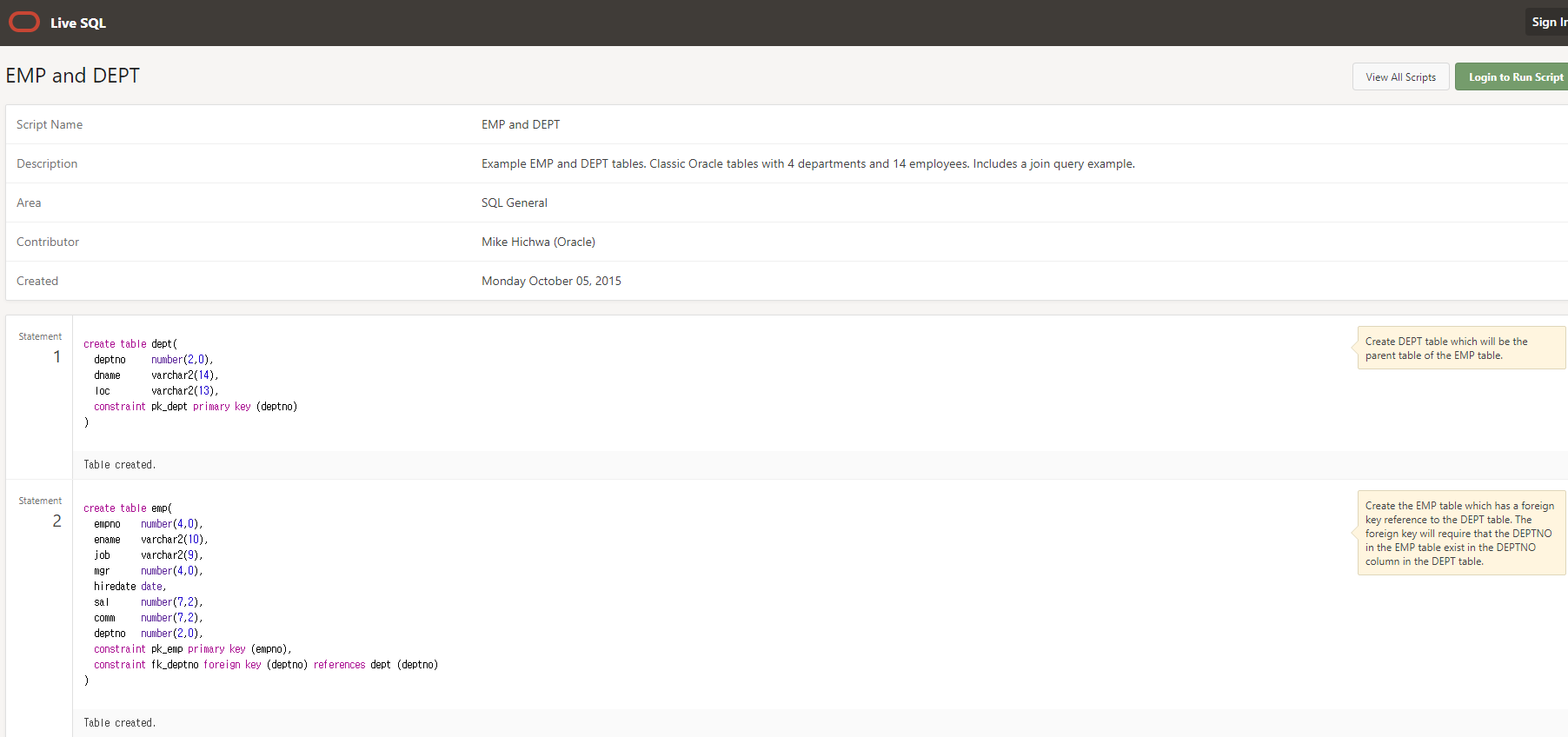 Table created.