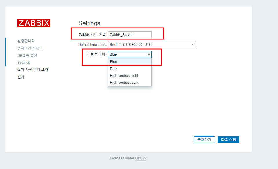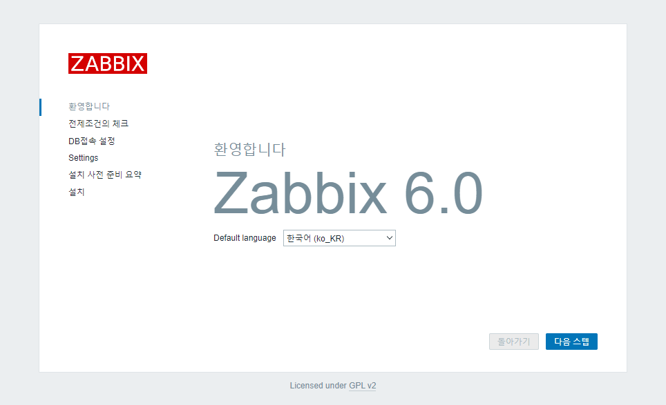 - 설치가 완료되면 Zabbix 웹 페이지에 접속 해서 모니터링 셋팅을 진행 한다.