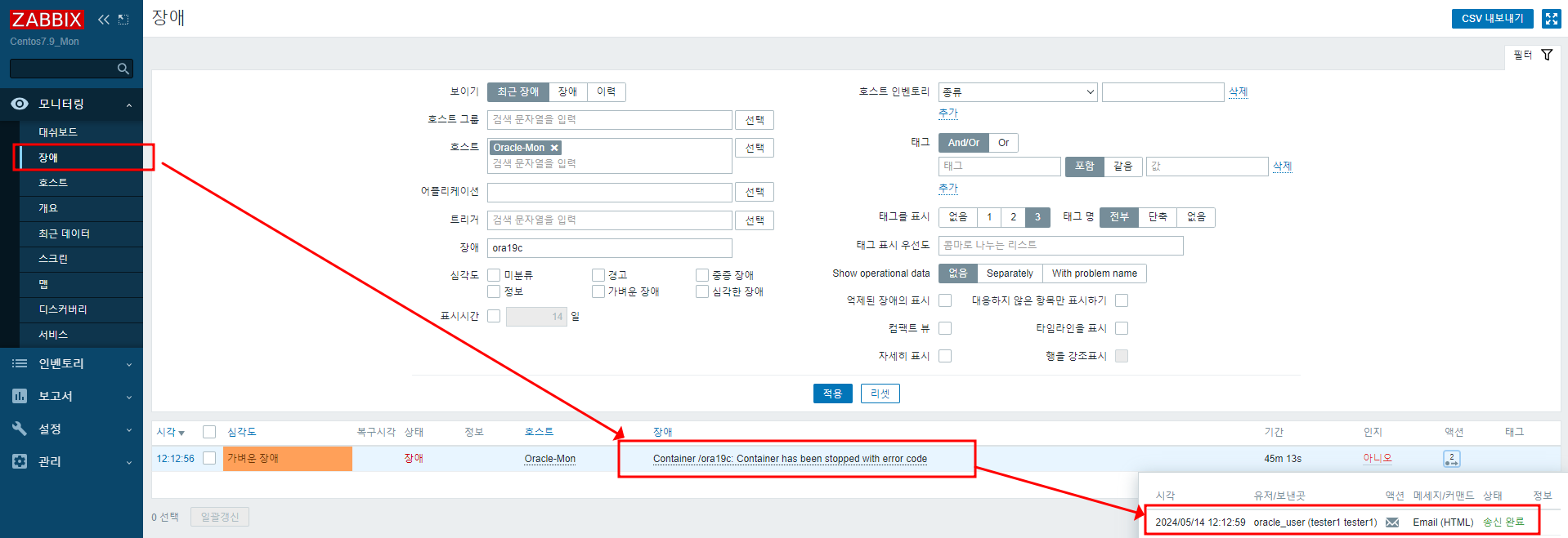 - 하단 그림 처럼 경고 문구가 발생할 경우 zabbix 서버 로그 를 확인 합니다.