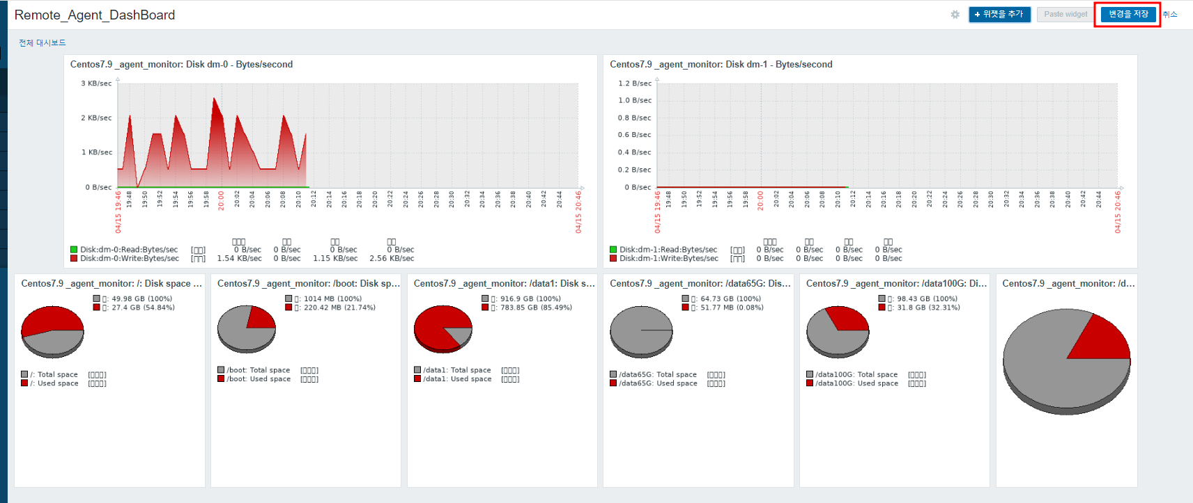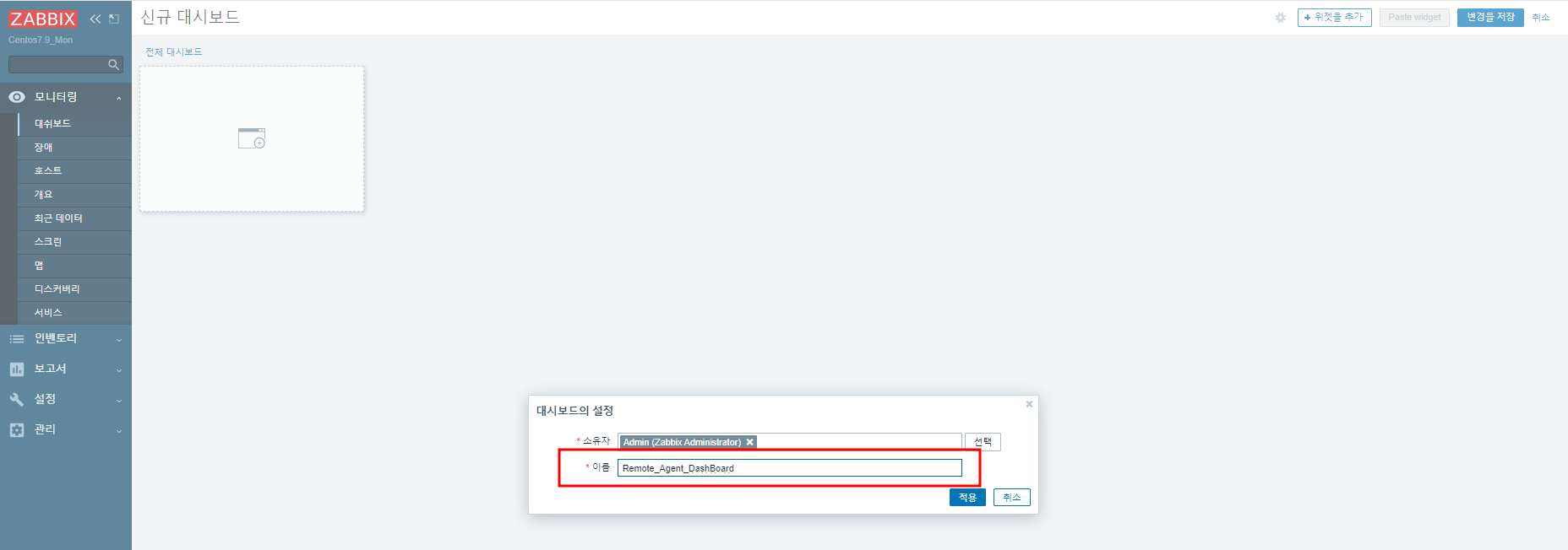 호스트 등록 및 대시 보드 작성은 zabbix 5.0 설정과 큰 차이가 없습니다.