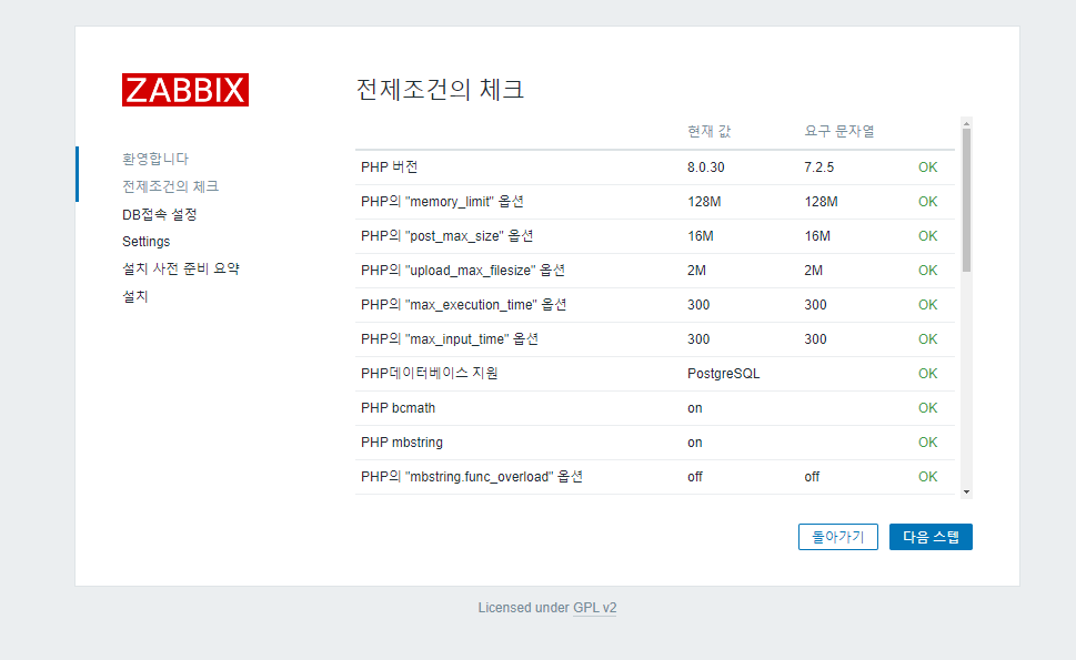 - Zabbix Server 와 PostgreSQL 서버가 설치 되었다면