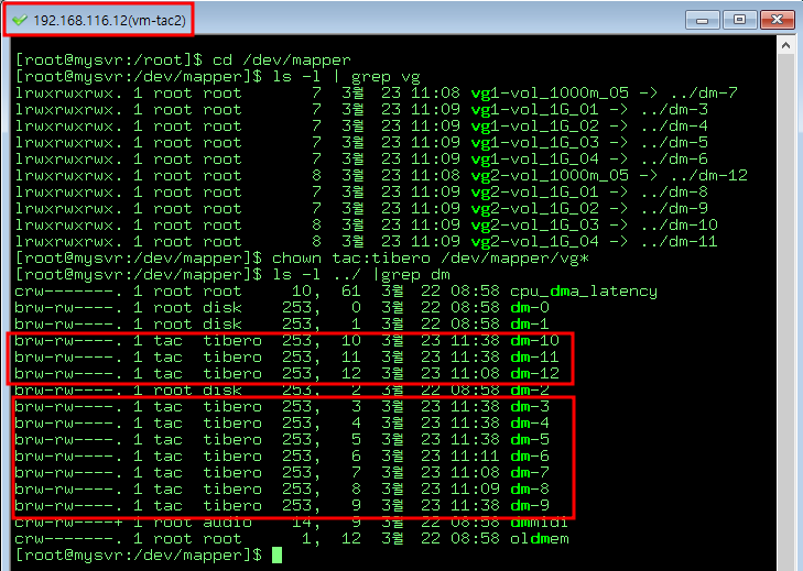 [tac@mysvr:/home/tac]$ tbcm -b ######################### WARNING ######################### # You are trying to start the CM-fence function. # ########################################################### You are not 'root'. Proceed anyway without fence? (y/N)y CM Guard daemon started up. CM-fence enabled. Tibero cluster manager (cm1) startup failed!