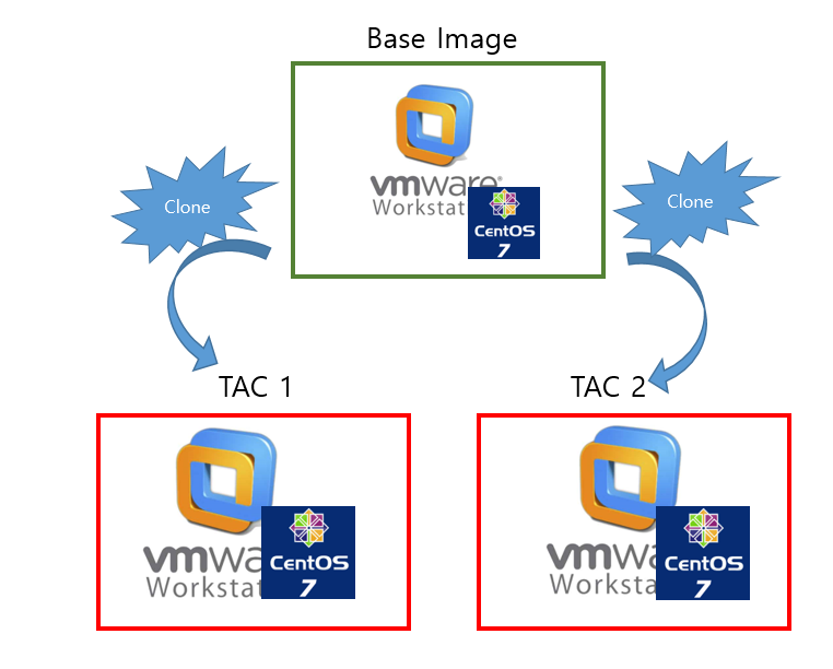 순서는 1번 tac1 machine 부팅 -> 2 번 tac2 machine 부팅 순으로 진행을 합니다.