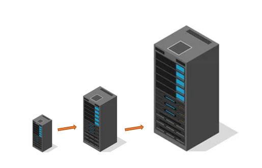 기존 8G 메모리, 1T 하드디스크로 서버가 구성되었다고 한다면 메모리: 8G-> 16G, 하드디스크 1T-> 10T 로 하드웨어 사양을 업그레이드 하는것을 스케일 업이라고하며 ,서버의 사양을 높이는 것이기 때문에 수직 스케일링(vertical scaling) 이라고도 한다.